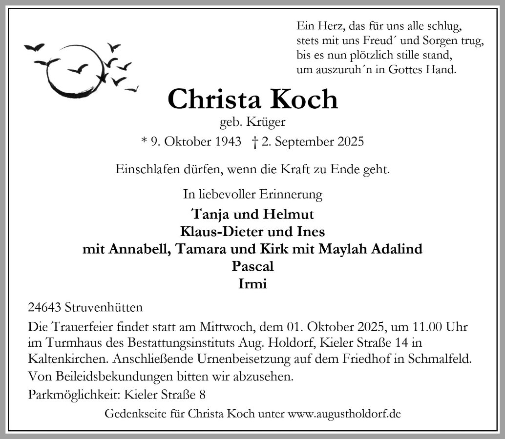 Christa Kochgestorben am 2. September 2025