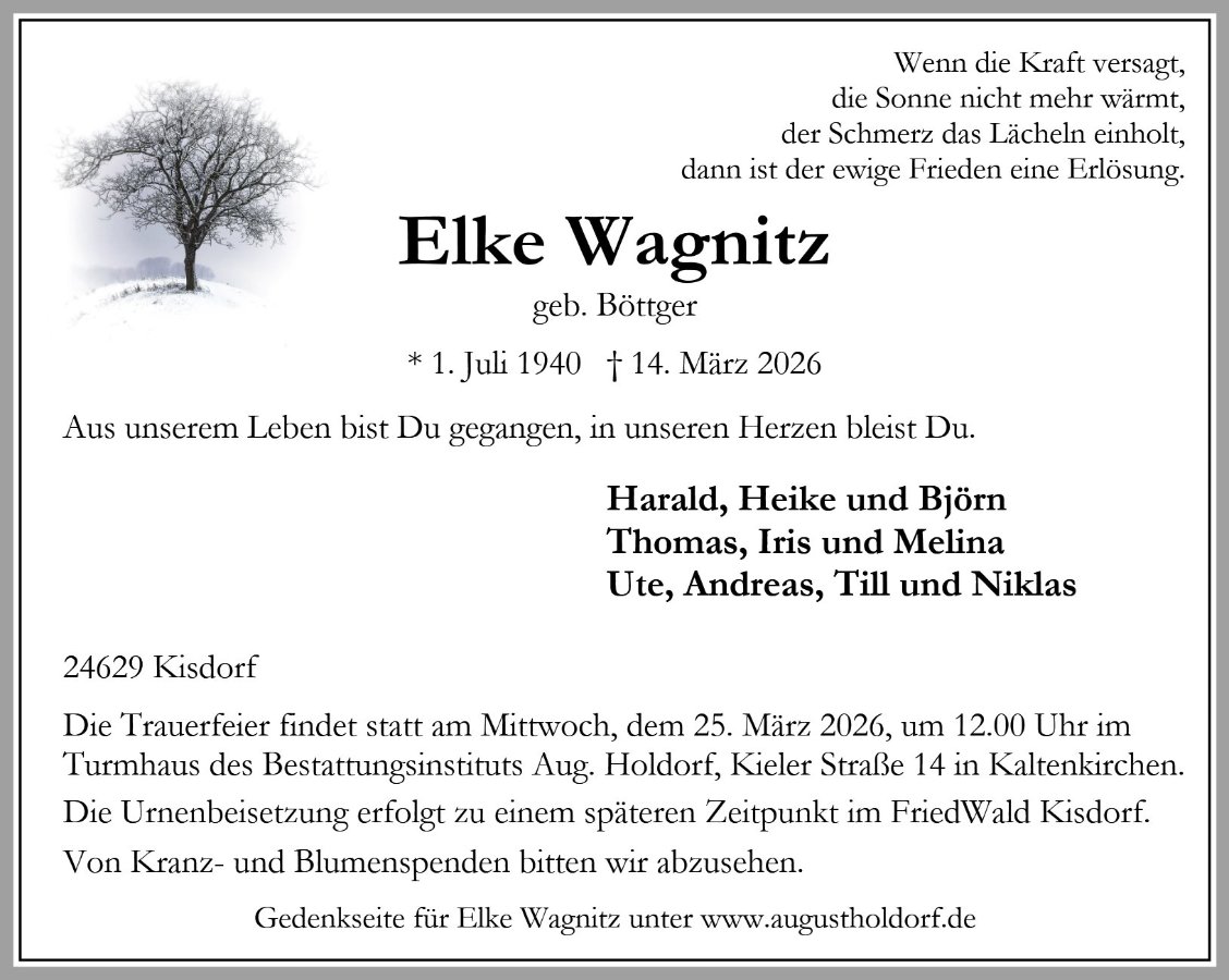 gestorben am 14. März 2026 in Kisdorf