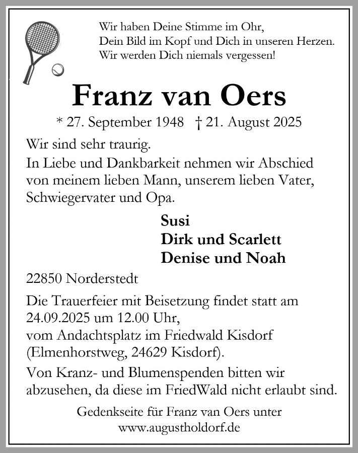 Ich werde Franz in bester Erinnerung behalten.