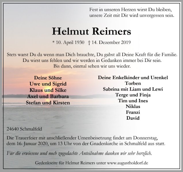 Helmut Reimersgestorben am 14. Dezember 2019