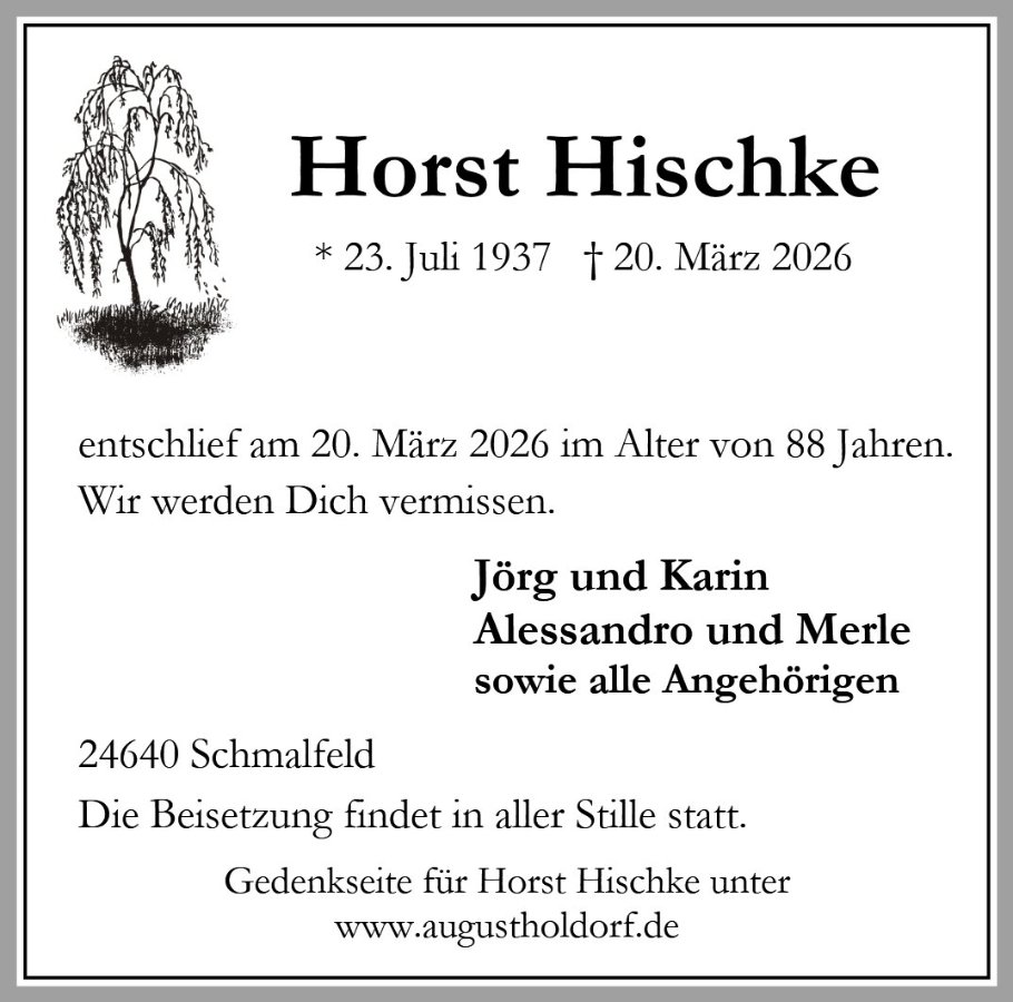 Horst Hischkegestorben am 20. März 2026