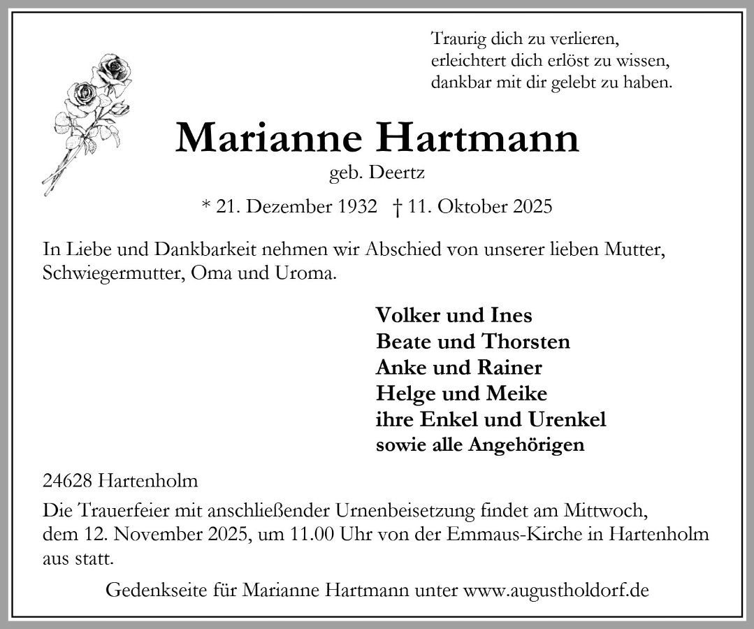 Marianne Hartmanngestorben am 11. Oktober 2025